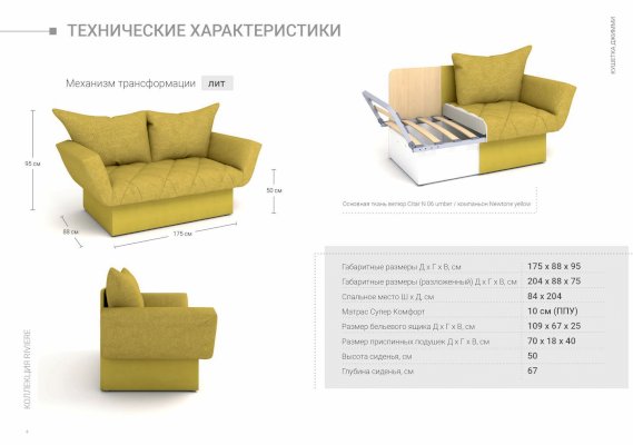 • съемный чехол облегчает уход за диваном. Возможна его замена для нового цветового или дизайнерского решения