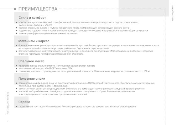 • широкий выбор обивочных тканей для создания идеального визуального образа. Высокие потребительские и эксплуатационные характеристики предложенных коллекций