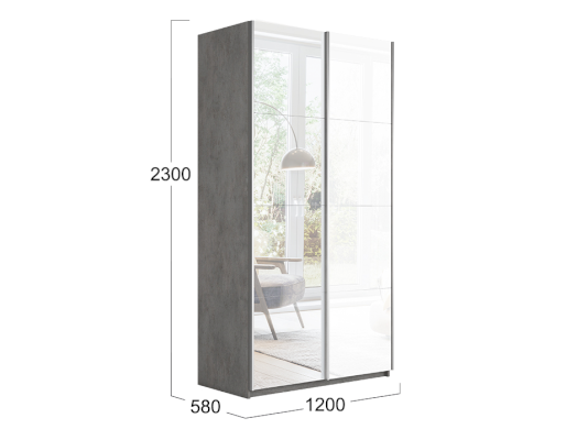 Двухдверный шкаф-купе с 1 зеркалом и стеклом Траст 1200 (Трия)