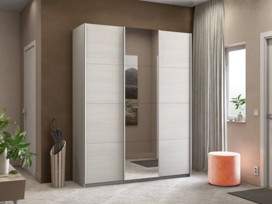 Серия «Прайм» отличается доступностью и функциональностью Навесные двери и лаконичная отделка фасадов создают прогрессивный дизайн. Подойдет тем, кто любит компактную и изящную мебель. Алюминиевые ручки и верхний ходовой профиль обеспечивают легкость и прочность конструкции. Многолетняя безупречная работа благодаря высококачественной немецкой фурнитуре Hettich. Прочная ПВХ-кромка толщиной до 1 мм защищает края от сколов и повреждений. Плавный ход дверей обеспечивает надежная система Hettich Top Line M. Дополнительно можно установить доводчики. Снаружи нет заглушек и винтов благодаря стяжечной системе крепления полок на флипперах, а корпус усилен эксцентриковыми стяжками. Навесные двери скрывают раздвижной механизм от глаз. Они надежно удерживаются в направляющих и не соскакивают. Каждая дверь поделена на 4 секции Секции расставляются в произвольном порядке, создавая новый дизайн фасада.