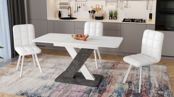 Декор данной модели стола «Дуб крафт золотой/Серый/Стекло серое матовое», привлечет внимание ценителей стильных и необычных решений. Сочетание этих цветов создает уникальный и экстравагантный вид. «Ателье темный/Белый/Стекло белое матовое» придает столу благородство и элегантность.