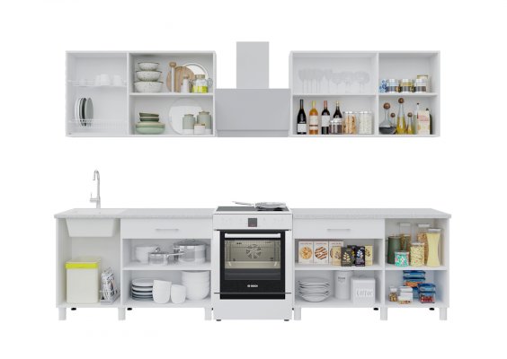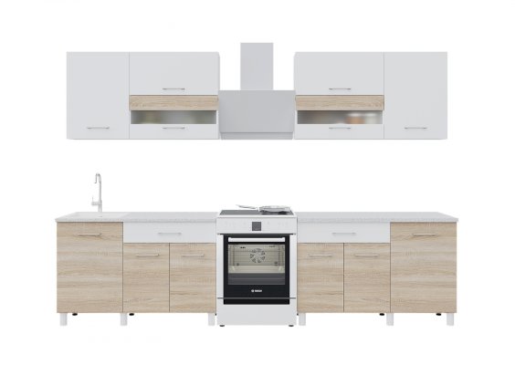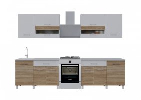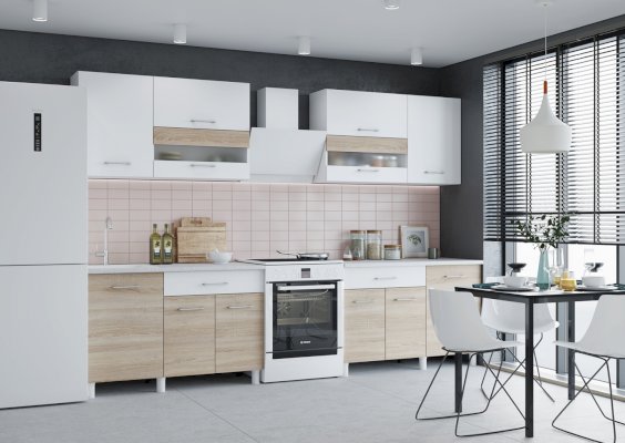 Объединяя два набора, размер кухни можно увеличивать и получать TREND 2400, суммируя наборы. Все кухни собираются в зеркальном исполнении.