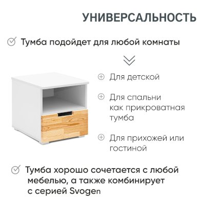 • Стильная лаконичная тумба в скандинавском стиле отлично дополнит другие комплекты мебели Svogen
